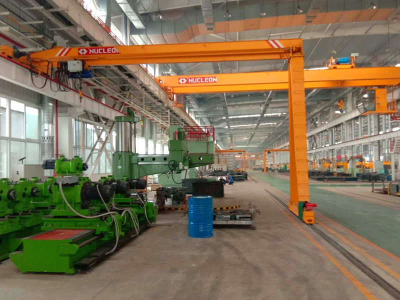 Hoisting mechanism of the universal hoist semi-gantry crane adopts modular and parametric design. The hoisting mechanism adopts a general rope electric hoist with stable performance, durability, safety and reliability. The traveling mechanism of the trolley is driven by vertical speed change or three-in-one drive device, and the common speed control system is used for control.