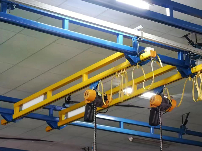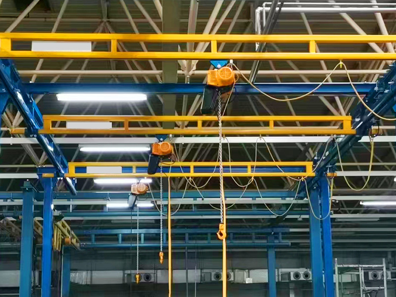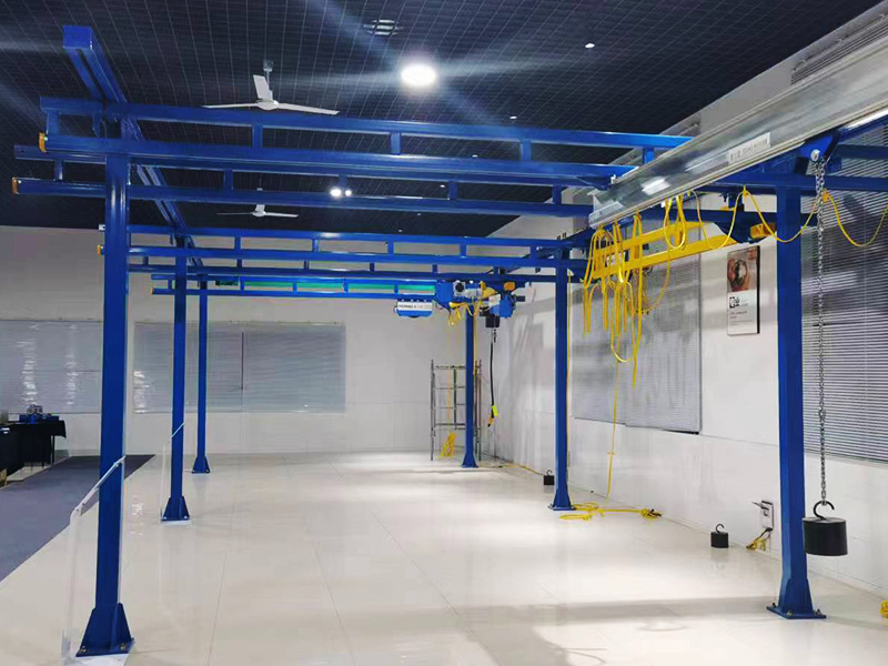 剛性軌道雙梁起重機采用輕量化、模塊化和定制化設(shè)計,起升機構(gòu)采用性能優(yōu)越、技術(shù)先進的NL型環(huán)鏈電動葫蘆,大、小車運行機構(gòu)根據(jù)起重量情況設(shè)置為人力驅(qū)動或三合一驅(qū)動裝置驅(qū)動。起重機大、小車軌道采用剛性或柔性軌道,根據(jù)場地實際情況可懸吊在空中或自立式的鋼結(jié)構(gòu)立柱上。